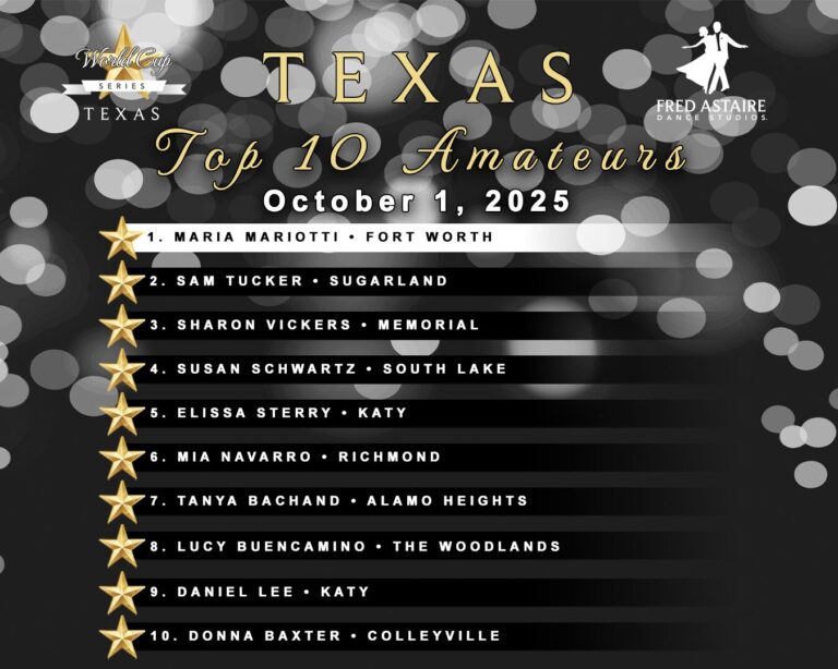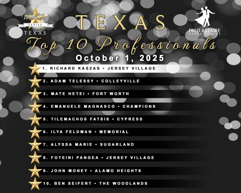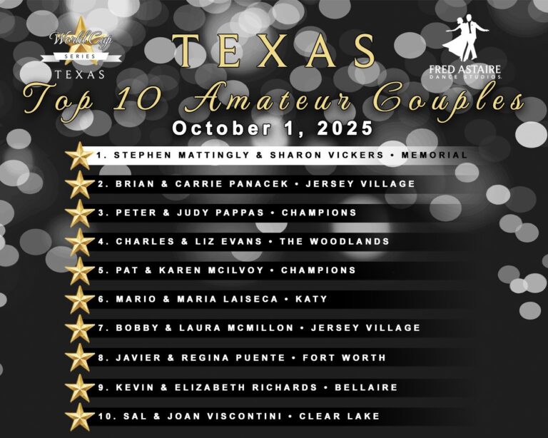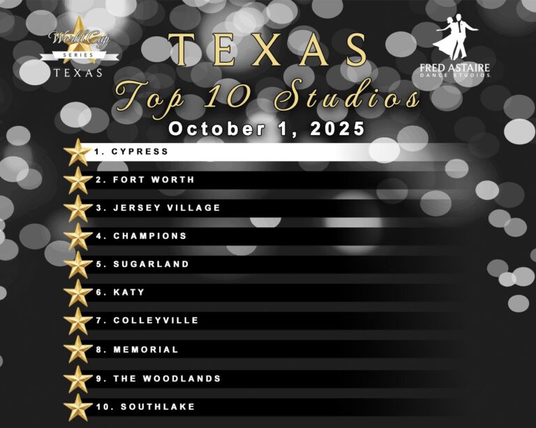 Texas World Cup Series is Fred Astaire Dance Studio’s rewards program for professionals and amateurs on the dance floor. When you attend a participating regional event, inter-regional event or national event, you receive points for competing. Below are Texas World Cup Series pages links, where you can track your progress, your professional’s progress, and your friends’ progress.