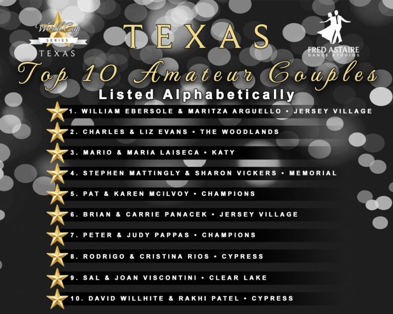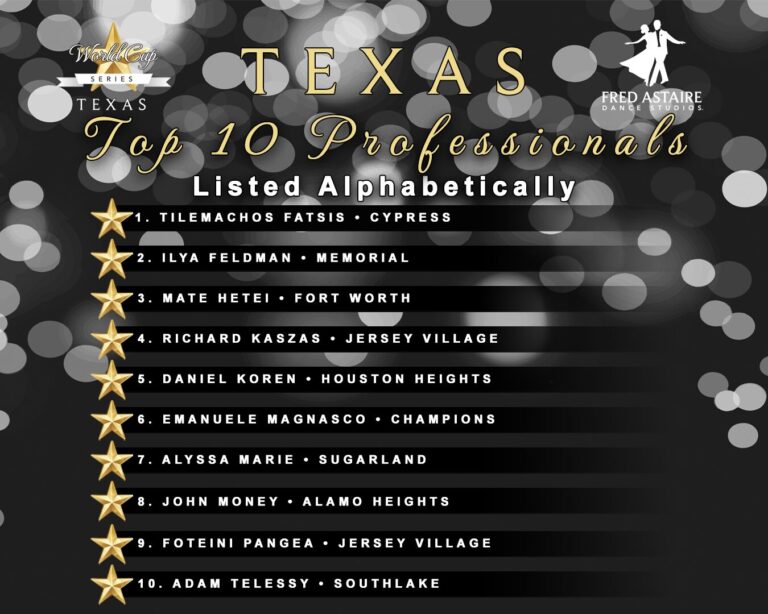 Texas World Cup Series is Fred Astaire Dance Studio’s rewards program for professionals and amateurs on the dance floor. When you attend a participating regional event, inter-regional event or national event, you receive points for competing. Below are Texas World Cup Series pages links, where you can track your progress, your professional’s progress, and your friends’ progress.