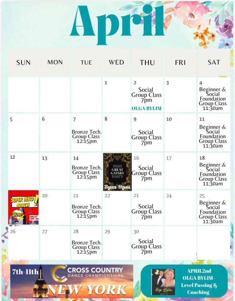 Below you will find our monthly calendar of events for Fred Astaire Dance Studio of Union Square, including group classes, practice parties, and special events!
