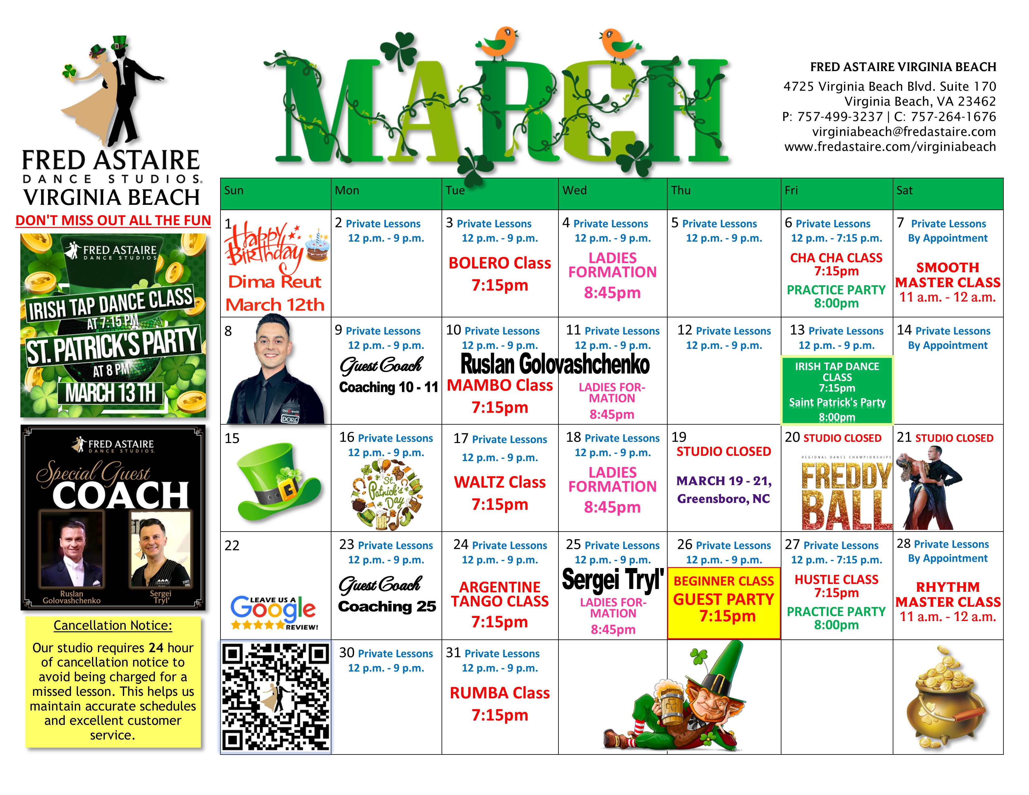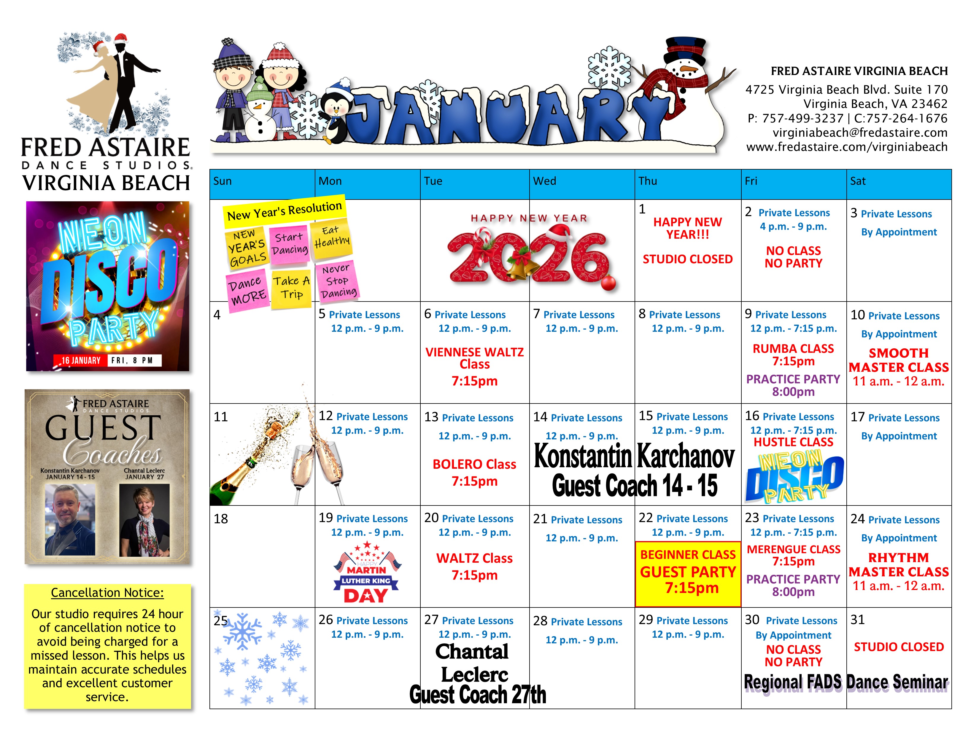 PLEASE NOTE: Our calendar of events is subject to change. Be sure to contact our studio for questions and more information.