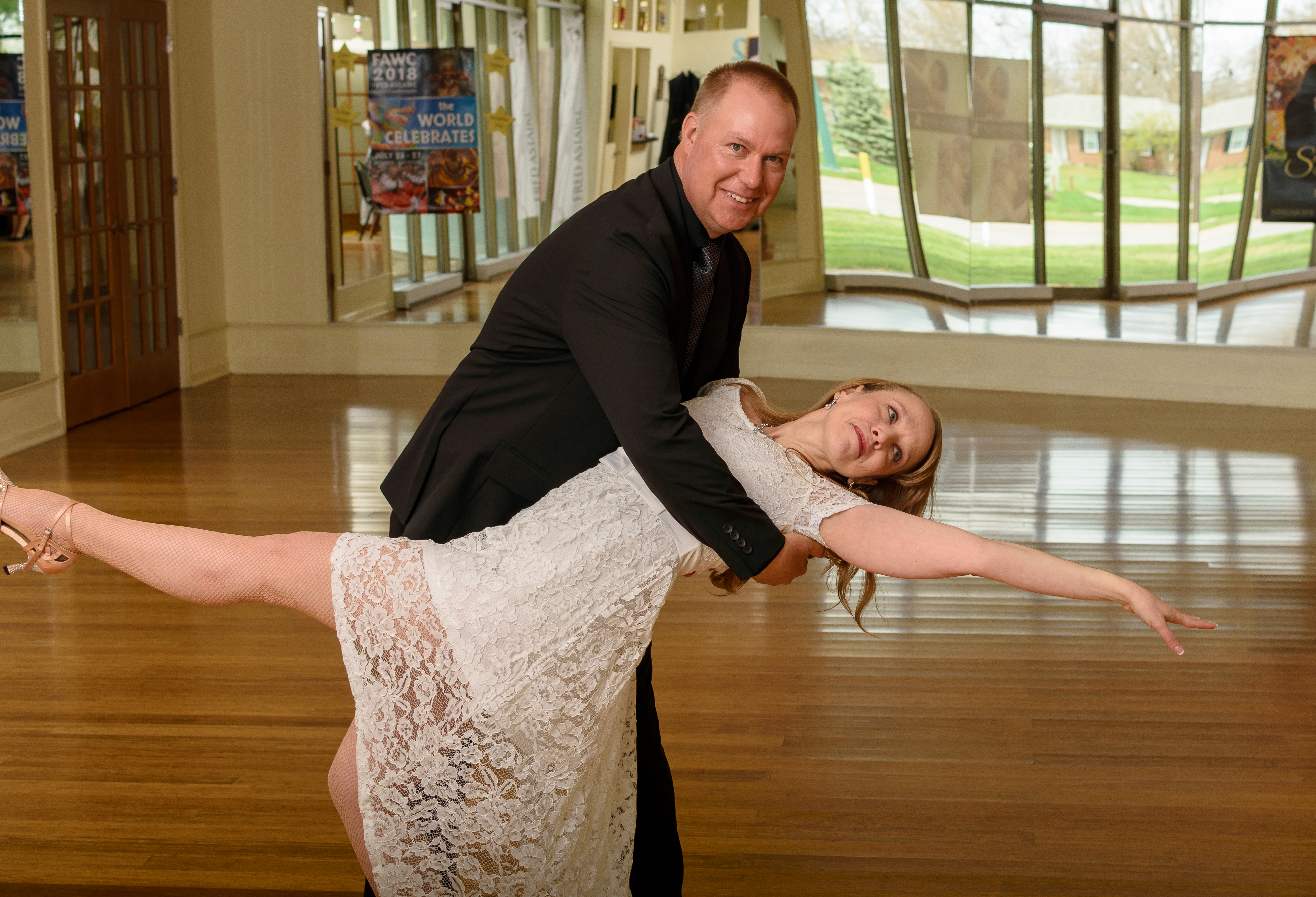 Marshall and Michele have had the opportunity to participate in several studio events. Perhaps the most meaningful was Fred Astaire Westerville’s Anniversary Showcase. In preparation for this event, the Yarnells’ worked with their instructors on choreographing a ‘wedding dance.’ They then had the opportunity to perform this dance at the event.