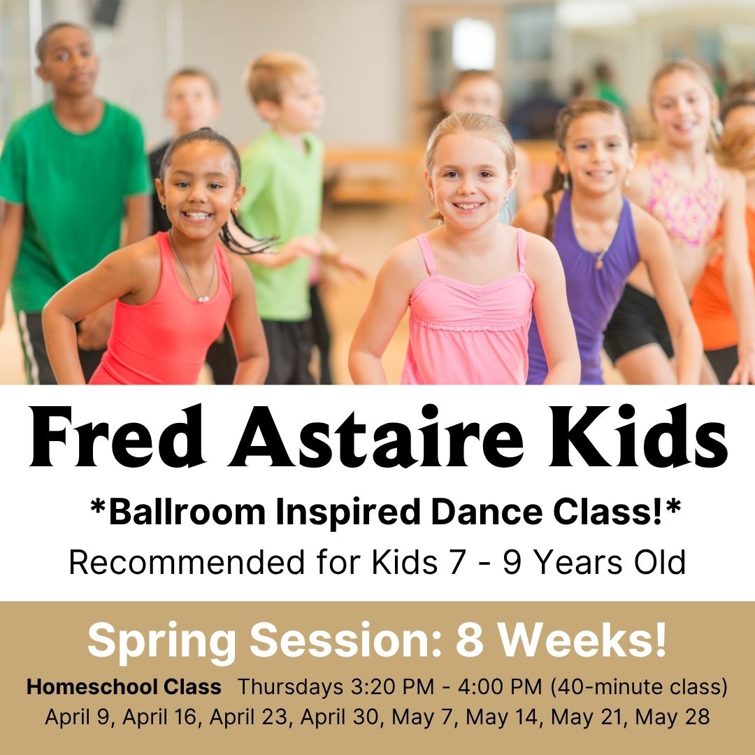 Fred Astaire Kids is a fun class recommended for kids between the ages of 7 and 9. This program will cover an introduction to a variety of dance elements taken from a variety of popular Ballroom and Latin dances, such as the Waltz, Swing, Bachata, and Foxtrot!