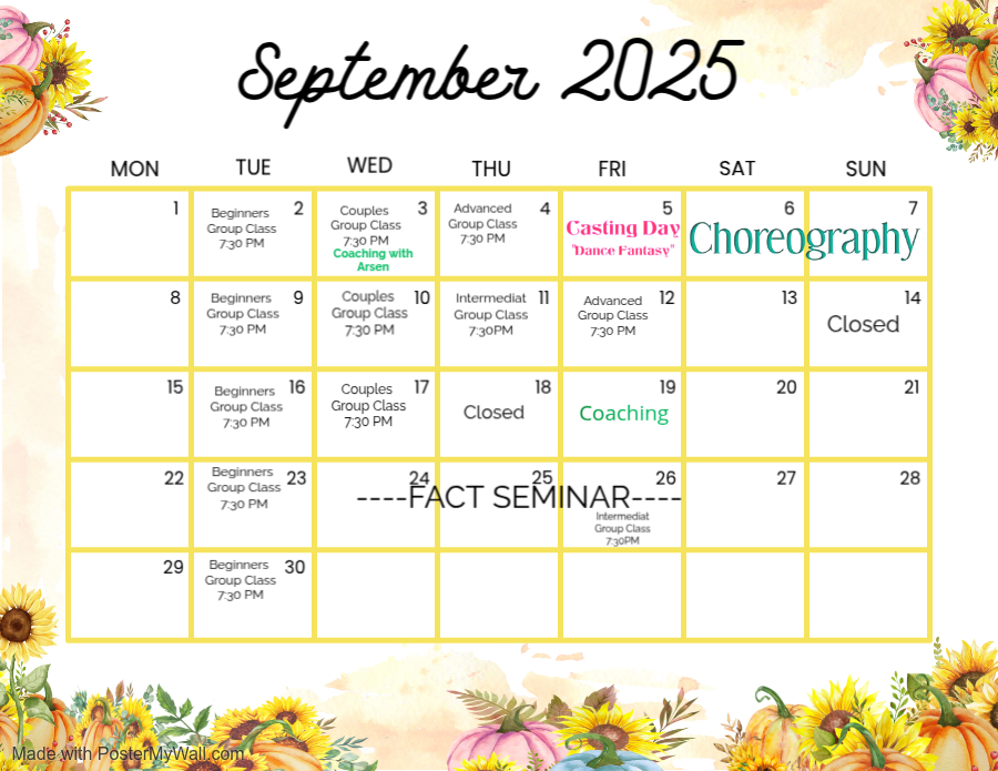 Please ask your instructor for more details on what classes they recommend you attend! For more information on how you can get started dancing with us, please give us a call at: 407-777-7780.
